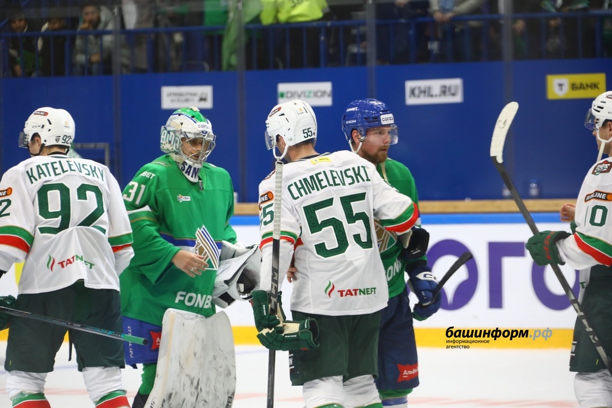 Противостояние в Уфе «зелёного дерби» закончилось поражением хозяев льда — 1:4. Сегодня в Уфе состоялся матч регулярного чемпионата КХЛ между «Салаватом Юлаевым» и «Ак Барсом». Противостояние «зелёного дерби» закончилось поражением хозяев льда — 1:4. Уфимский голкипер Александр Самонов пропустил первую шайбу на 3-й минуте игры, гол забил Илья Сафонов. Затем количество пропущенных шайб в начальном отрезке встречи увеличилось до трёх. Ворота «Салавата Юлаева» поразили Дмитрий Яшкин и Степан Фальковский. Единственную шайбу «Ак Барсу» на 14-й минуте забросил капитан уфимской дружины Григорий Панин. Во втором периоде четвёртый гол уфимцам забил Александр Хмелевский, который ещё в прошлом матче «зелёного дерби» защищал цвета уфимского клуба. В прошлом матче «Салават Юлаев» проиграл московскому «Спартаку» со счётом 1:2, сообщал «Башинформ».