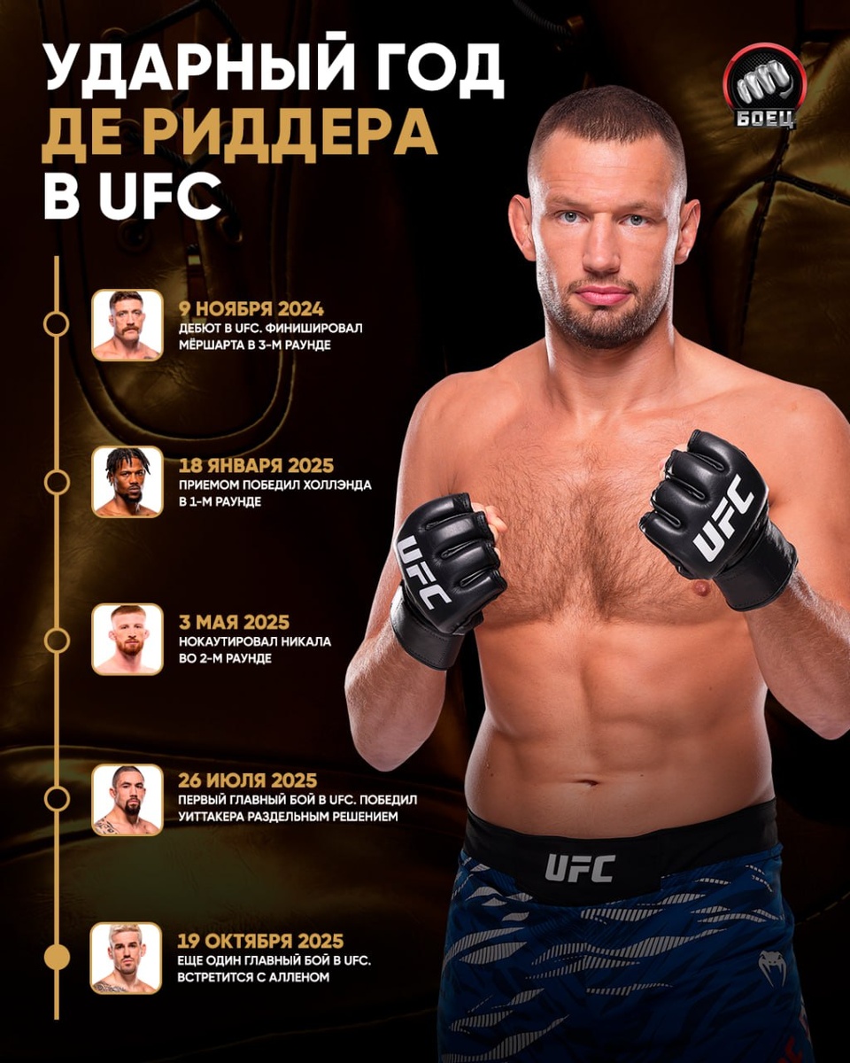 Де Риддер в UFC меньше года, но добился он уже многого 👀