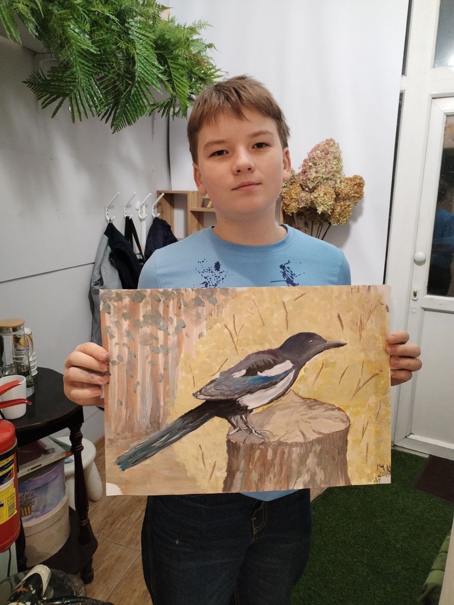 "Любопытная сорока" - Александр, гуашь