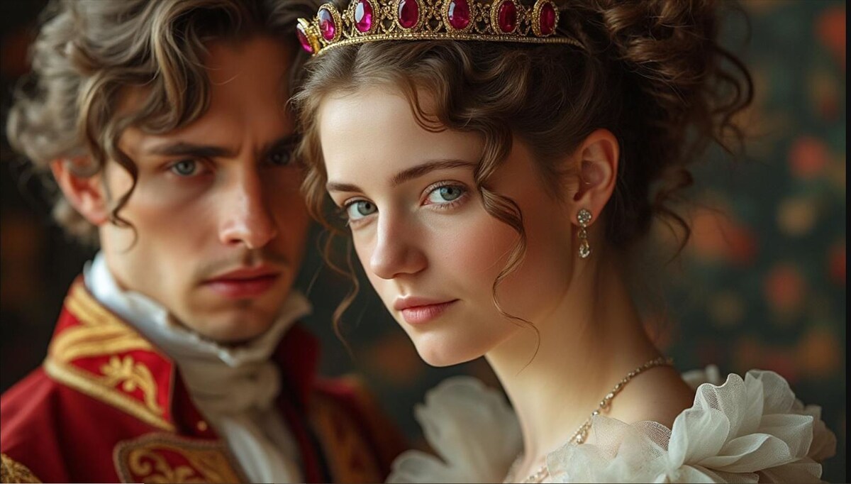 Он не скрывал гордости. Высокий, статный Алексей уверенно вёл в танце хрупкую красавицу — изящную, спокойную, светлую. Дарья была прекрасна. Её движения были лёгкими, взгляд — мягким, улыбка — чистой. Рубины на диадеме переливались в свете люстр, словно сами говорили за неё: «Род жив, честь сохранена».