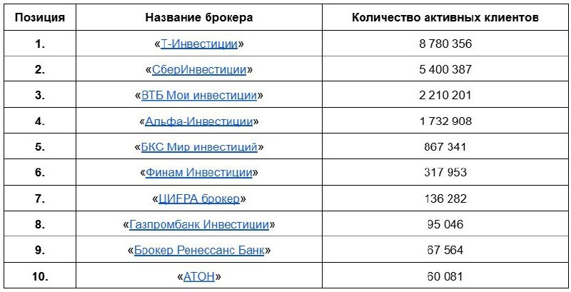 Топ брокеров по количеству активных клиентов