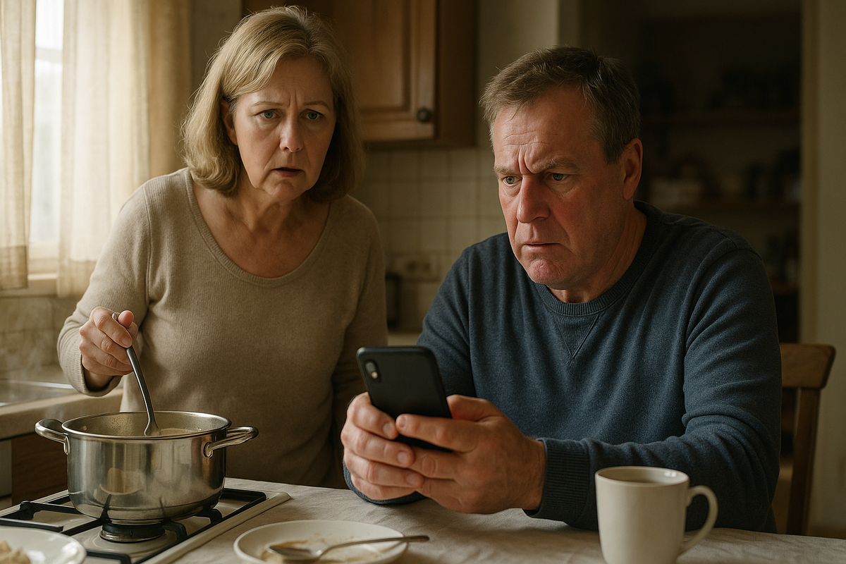Я стояла у плиты, помешивала суп. Витя сидел за столом с моим телефоном в руках. Искал номер сантехника — его телефон разрядился.