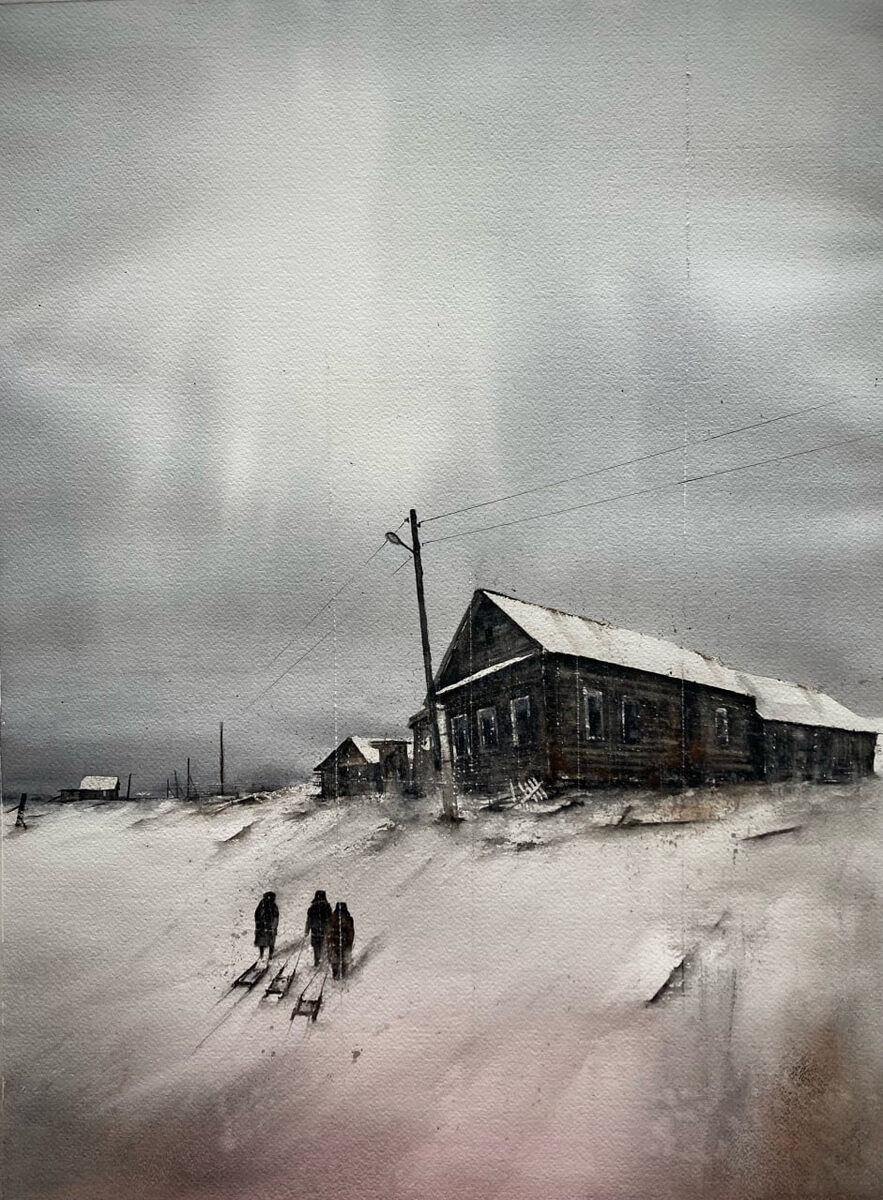 Красота хмурости🇷🇺 Игорь Волков — художник из города Павлово Нижегородской области. Родился в 1986 году, живет и работает там же. В детстве Игорь ходил в художественную школу, но его выгнали. По словам художника, он не выдумывает сюжеты, а старается передать эмоции, которые переносит на лист без черновиков и эскизов. Сюжеты для картин Волкова берутся из того, что он видит вокруг. Художник живет у железной дороги и обожает тяжелый, усталый металл. Еще его вдохновляет засохший борщевик, который растет вдоль дороги от Павлово до Нижнего Новгорода. Акварели Игоря Волкова почти монохромные, но в них много коричневого, серого и других цветов. В рисунках можно найти всю палитру, которая есть в сумерках хмурого зимнего дня. #Мастера_акварели Любители акварели