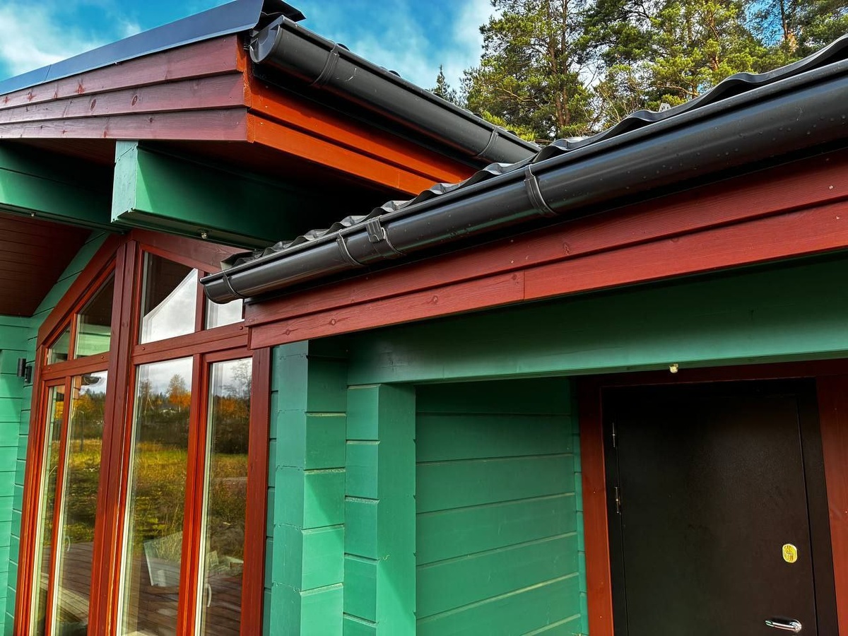 Подтверждаем фотографиями, что «Бруклин» хорош не только с натуральной фактурой дерева, но и в цвете. Оцените, какое яркое решение по внешней отделке — идеальное попадание в окружающий пейзаж. Дом в деталях: 172 м2 (118 жилая)