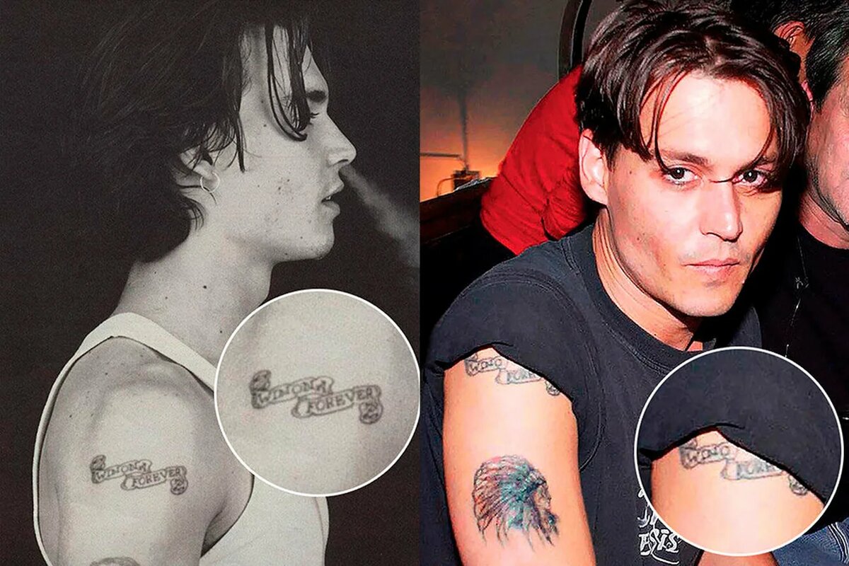 Депп когда-то сделал татуировку “Winona Forever” в честь Вайноны Райдер. После расставания он не стал удалять рисунок, а просто изменил его на “Wino Forever” — “Вечно с вином”. Это, пожалуй, самая известная в Голливуде модифицированная татуировка и один из символов самоиронии актёра.