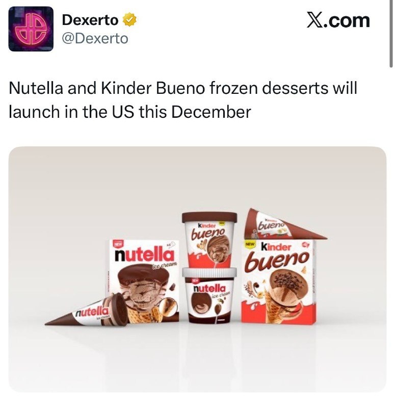 Nutella и Kinder Bueno представляют новую серию ЗАМОРОЖЕННЫХ ДЕСЕРТОВ: это нежное мороженое с шоколадно-ореховым вкусом и хрустящей начинкой. С 1 декабря 2025 года этот продукт станет доступен в американских магазинах, а затем и на международных рынках. Постмейкер - автоматическое ведение канала 🤖 Анимация | СhatGPT-4 | Помощь с резюме