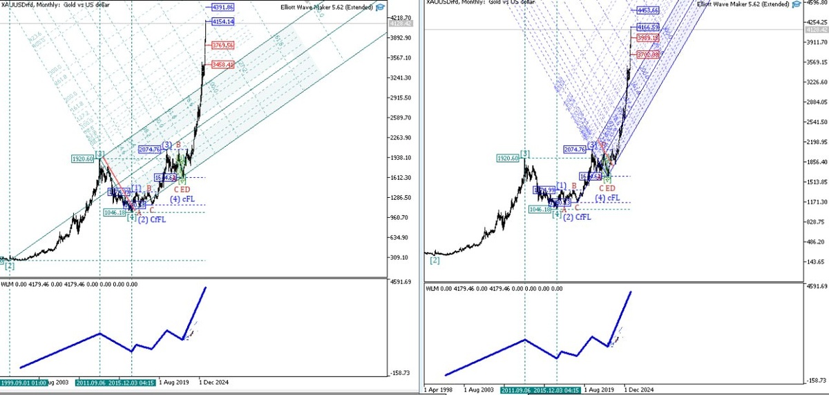 #Gold, два волновых уровня , смотрим как работают вилы Эндрюса совместно с волновым анализом , наблюдаем за ценой .