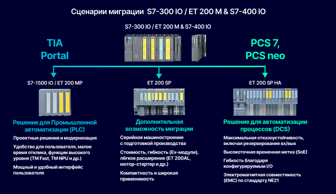 Компания SIEMENS снимает с производства модули ввода-вывода SIMATIC S7-400. Центральные процессоры и большинство коммуникационных модулей остаются актуальными и в ближайшем будущем их снятие с производства пока не планируется. В зависимости от области применения и систем автоматизации/управления в качестве функциональной замены рекомендуются распределенные системы ввода-вывода PROFINET SIMATIC ET 200MP, SIMATIC ET 200SP или SIMATIC ET 200SP HA. Снимаемые с производства модули ввода-вывода SIMATIC S7-400 будут доступны для заказов в качестве запасных частей еще в течение примерно 10 лет, но по увеличенным ценам и с увеличенными сроками поставки. Однако, в связи с высокой динамичностью рынка комплектующих, мы не можем гарантировать, что, несмотря на тщательное планирование, это может быть обеспечено для всех модулей. Поэтому новые проекты рекомендуется делать на новых системах ввода-вывода. Состав снимаемых с производства модулей SIMATIC S7-400: