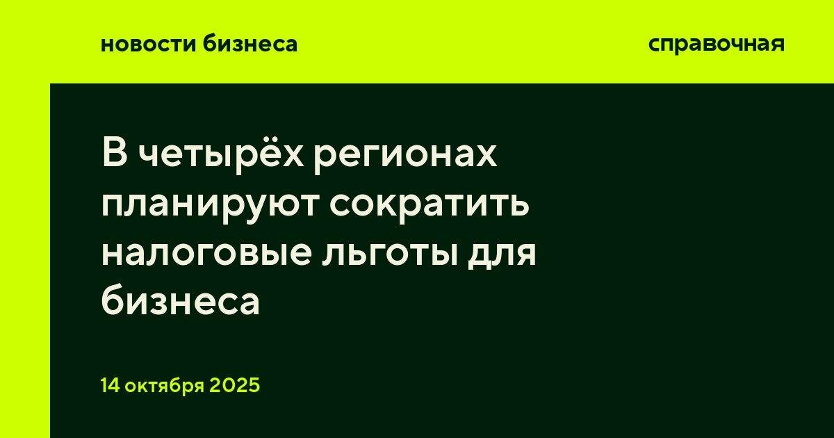 ↘️ В четырёх регионах планируют сократить налоговые льготы для бизнеса