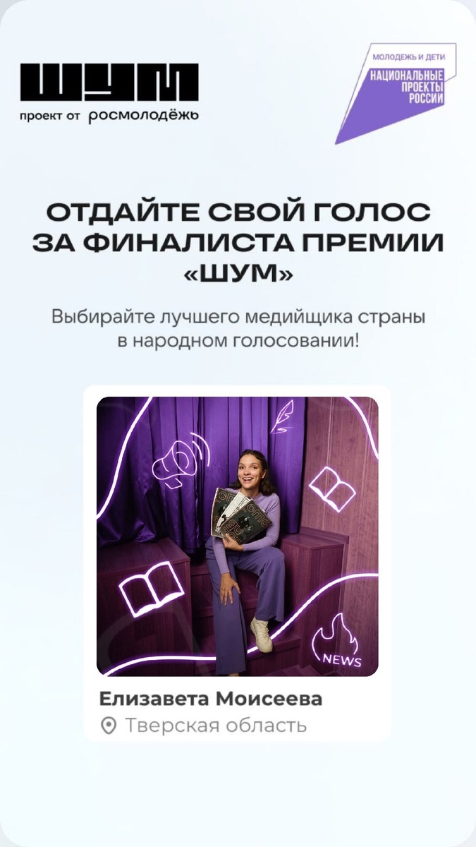 💥 До окончания народного голосования всероссийской Премии «ШУМ» остаётся всего 4 дня! 🔥Журнал ТвГТУ CTADИ-ON прошел в финал всероссийской молодежной Премии в сфере медиа и журналистики «ШУМ», и теперь ребятам нужна наша поддержка! Отдать свой голос за проект наших студентов можно в номинации «Медиазачёт», номинант – Елизавета Моисеева, главный редактор журнала. Голосование продлится до 18 октября включительно, голосовать можно каждый день! Поддержим проект нашего студенческого журнала CTADИ-ON🔥 👉 https://vk.com/app_premiashum#/category/10/nominants/88 ❗️Голосуем за ТвГТУ! Голосуем за CTADИ-ON❗️ Всероссийская молодёжная премия в сфере медиа и журналистики «ШУМ» организуется в рамках реализации федерального проекта «Россия страна возможностей» национального проекта «Молодёжь и дети». Социальные сети проекта: 💬 Telegram — https://dzen.ru/id/6835761c66db897f37de6f15 💙 ВКонтакте — vk.com/premiyashum #ТвГТУ #Политех #MEDIA_ON #CTADИ_ON #ПремияШУМ #Росмолодёжь