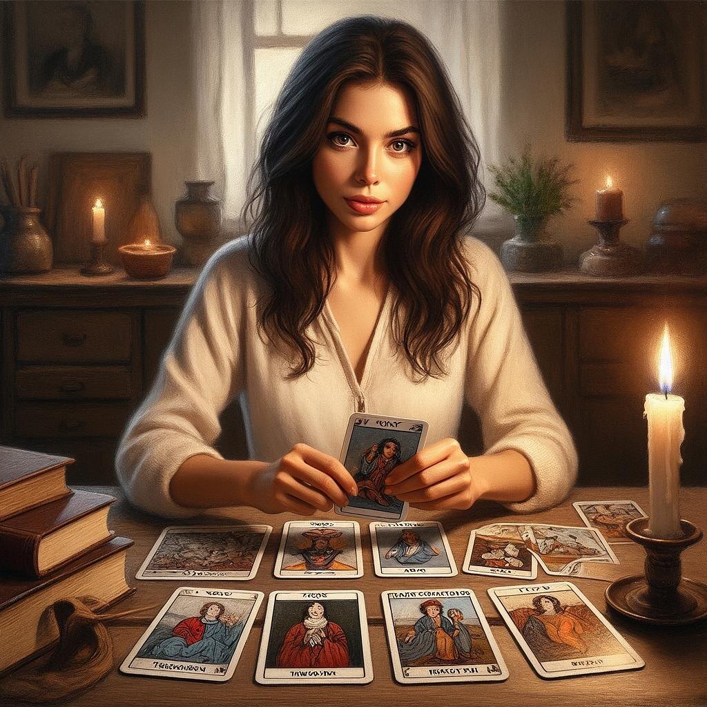 Катерина работала менеджером среднего звена в крупной корпорации. Её жизнь казалась стабильной и размеренной: квартира в центре Москвы, хорошая зарплата, друзья, вечеринки. Но внутри Катерины росло ощущение, что она живёт чужой жизнью, что её истинное предназначение потерялось где-то в бесконечных рабочих буднях. Однажды вечером Катерина шла по улице и остановилась у небольшого кафе, где проходила выставка картин. Её взгляд зацепился за объявление: «Читаем карты Таро. Узнай свою судьбу». Испытав мимолетное желание и немного игривости, Катерина решила зайти и попробовать. Опытная мастерица Таро встретила её дружелюбной улыбкой и предложила выбрать пять карт. Девушка выбрала карты инстинктивно, почти механически. Первое, что бросилось в глаза, — карта «Перемен». Затем последовали «Возрождение», «Мировое дерево», «Смерть» и «Светильник». Мастерица медленно переворачивала карты, комментируя каждую: — Переменам настало время вступить в твою жизнь. Но ты сопротивляешься изменениям. Ста