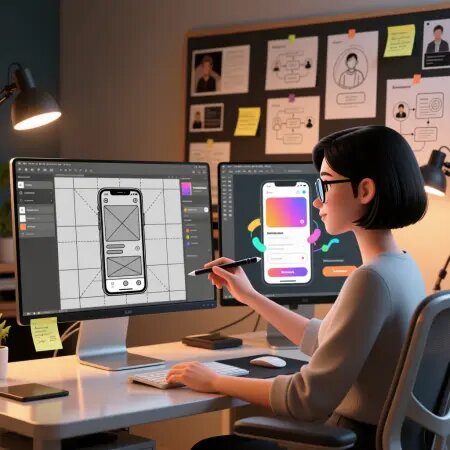 Wireframe — это схематичное представление структуры страницы или экрана приложения. Мы фокусируемся на: Этот этап позволяет быстро тестировать идеи, согласовывать структуру с командой и избегать дорогостоящих переделок на поздних этапах. 2. Full-fledged UI Design — готовый визуальный интерфейс