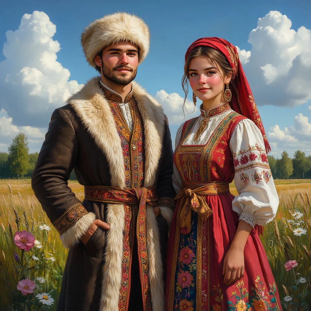 Русские народные костюмы представляют собой уникальный феномен, отражающий национальную идентичность, местные традиции и климатические условия. Костюм менялся в зависимости от региона, сезона и социального статуса владельца. Мужская одежда была проста и функциональна, женская — изысканна и декоративна. Мужской костюм традиционно состоял из рубахи, штанов и верхней одежды. Рубаха была свободной, надевалась поверх штанов и подпоясывалась поясом. Штаны изготавливались из холста или шерсти и завязывались шнурком. Верхняя одежда варьировалась в зависимости от климата: полушубок, кафтан, армяк или зипун. Особенности костюма мужчин разных регионов: Женский костюм гораздо разнообразнее и красивее. Основой женского гардероба была длинная рубаха с рукавами, расшитая узорами. Поверх рубахи надевали сарафан или юбку, сверху надевали фартук и жилетку. Головной убор женщины менялся в зависимости от возраста и семейного положения. Особенности женских нарядов по регионам: Несмотря на различия, русск