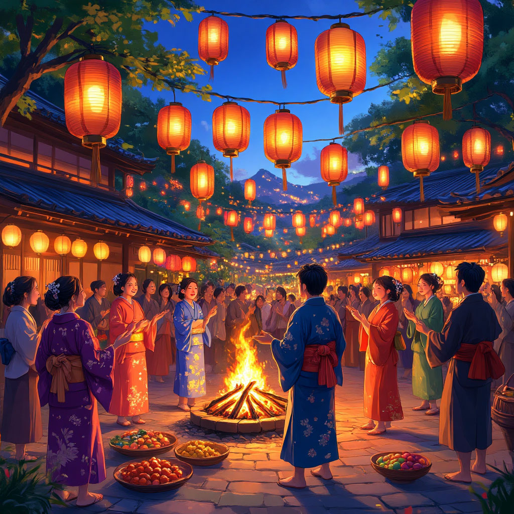 Танцуют в память о предках и зажигают для них фонарики — так японцы поминают умерших родственников во время праздника Обон. Что интересно, точного дня проведения праздника нет. Каждый выбирает приемлемую для себя дату из двух возможных. Обон в Японии — очень популярный семейный праздник, который отмечают летом. Вот только точной даты празднования нет: кто-то поминает предков в июле, кто-то — в августе. Так вышло потому, что после внедрения григорианского календаря кто-то стал придерживаться нового стиля, а кто-то решил отмечать Обон по лунному календарю. Сам же праздник имеет богатую историю: документально зафиксировано, что празднуется он как минимум с XVII века. И, конечно, за столько лет выработались особые ритуалы. В первую очередь это подношение даров: на могилы предков в эти дни приносят цветы, фрукты, рис и сладости. Собственно, и название праздника связано с подношениями. Согласно буддистским легендам, в древние времена жил юноша по имени Мокурэн. Каким-то образом он узнал, что