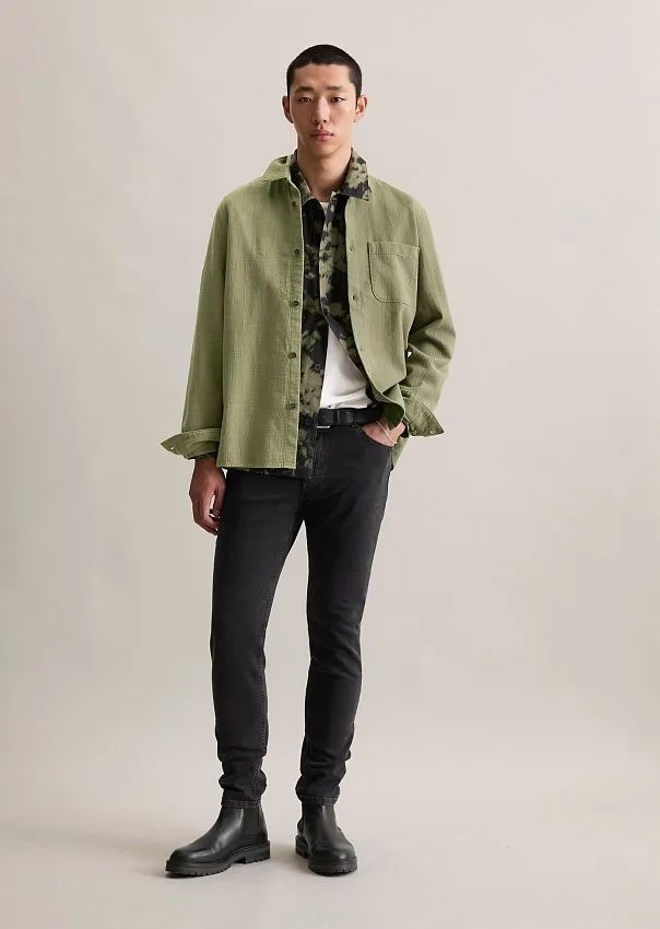 Добавьте рубашку из органического хлопка. Ее натуральный материал и свободный крой создадут комфорт и стиль. Для контраста можно выбрать рубашку из прочной ткани рипстоп с узором.