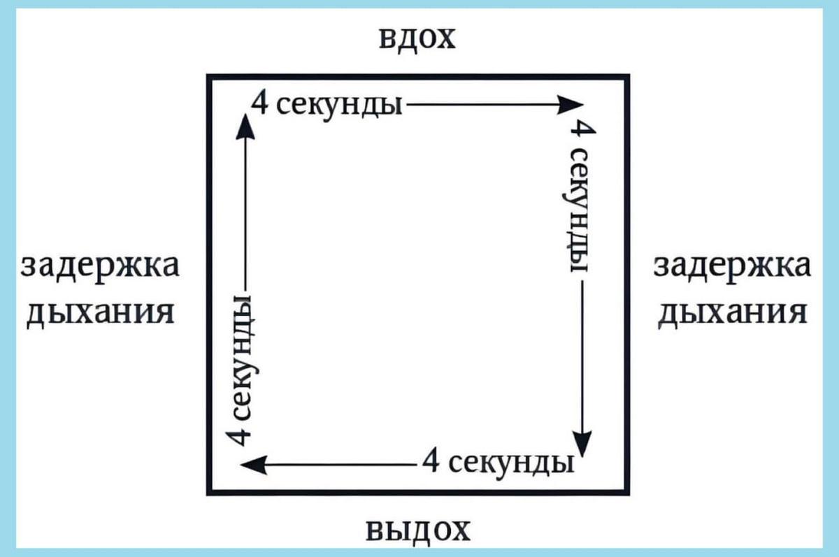 Это простая, но эффективная дыхательная техника, которая помогает снизить уровень стресса, стабилизировать эмоциональное состояние, включить тело в работу по саморегуляции и вернуть ощущение контроля в тревожных ситуациях. ⠀ Метод «квадратного дыхания» (его ещё называют «дыхание по квадрату» или «box breathing») используется в психологической практике именно потому, что техника даёт быструю, ощутимую опору в моменте. ✍ Как выполнять упражнение 1. Найдите спокойное место и удобную позу. Вы можете сидеть или стоять. Главное — спина прямая, плечи расслаблены. Глаза можно закрыть или сфокусироваться на точке перед собой. ⠀ 2. Представьте себе квадрат. Он может быть мысленным, или вы можете смотреть на что-то квадратное (экран, окно, лист бумаги), чтобы опора была визуальной. ⠀ 3. Дышите по ритму четырёх равных частей: — Вдох — 4 счёта — Задержка дыхания — 4 счёта — Выдох — 4 счёта — Задержка после выдоха — 4 счёта ⠀ Повторите цикл 4–6 раз. Постепенно можно увеличивать продолжительность ка