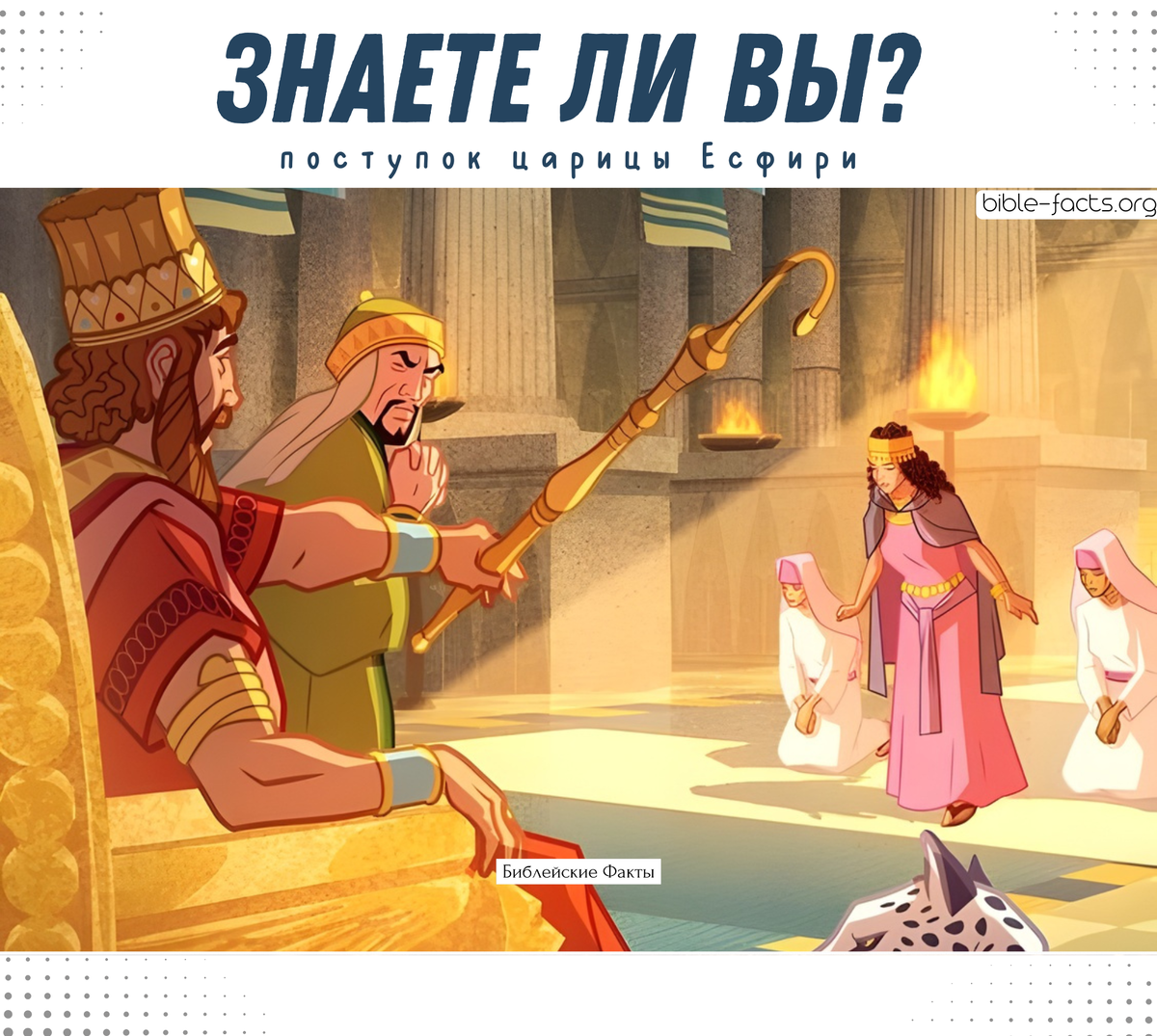 А вы знали, что поступок царицы Есфири был равносилен самоубийству? В Персидской империи действовал строгий закон: каждый, кто входил к царю без приглашения, подлежал смерти - если только царь не протягивал свой золотой скипетр в знак милости (Есфирь 4:16). Одна из главных причин: