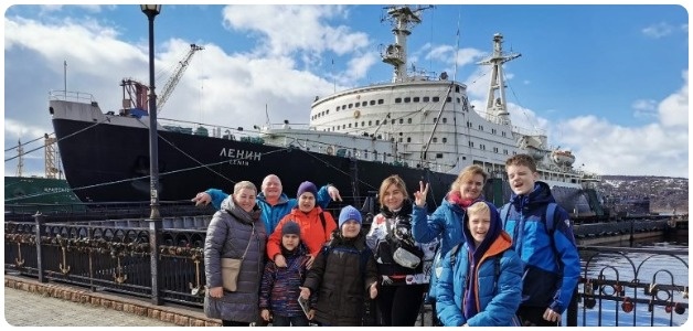 На центральной площади «Пять углов» горит огромная ёлка, в окнах — свет, и даже мороз здесь выглядит нарядно. На ледоколе «Ленин» мы провели почти два часа. Дети стояли у штурвала, взрослые рассматривали каюты офицеров.