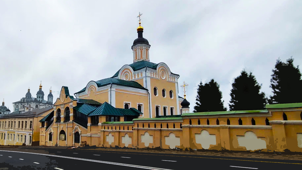 Свято-Троицкий монастырь находится в историческом центре Смоленска. В современном ландшафте города этот монастырь смотрится не так впечатляюще, как хотелось бы. Грустно расположившись у пыльной дороги, он будто бы на паперти просит милостыни в виде наших молитв... А мы.. проходим мимо, словно он фон, просто стена, разделяющая улицы..