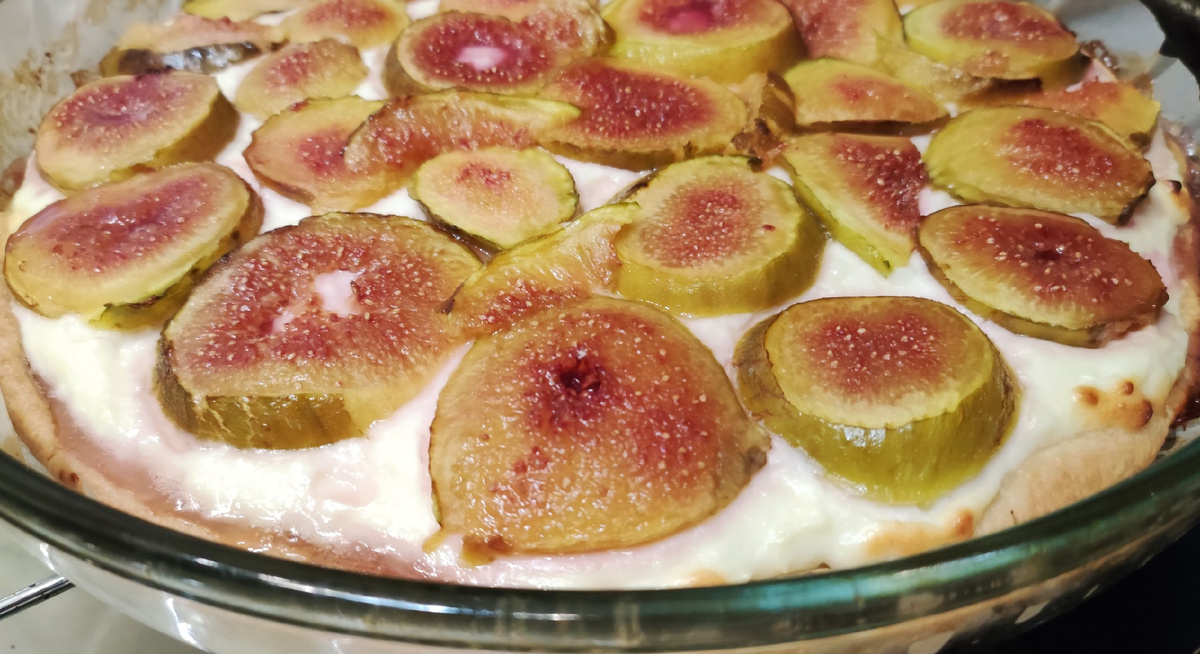 Ура! Я сделала это! (Ольга, спасибо!) Ну правда, спасибо большое читательнице за эту идею! Что называется, все звезды сошлись: и несладкий инжир реализовала, и остатки мягкого творога и последнюю пачку масла нашла в морозилке. А рецепт взяла усреднённый с просторов интернета. Тесто песочное классическое для галеты (без сахара). Когда я его погрузила в форму, то решила сначала выпечь "тарталетку", а следующим заходом допечь с начинкой. Побоялась все-таки края заворачивать поверх жидковатой начинки. Но, может быть, и зря. Тогда бы прямо классическая галета была! А так больше похоже на киш получилось. Смешала творог с яйцом, сахаром и крахмалом (всё на глаз и по вкусу), сверху выложила кусочки инжира и ещё присыпала сахаром. И в итоге очень классно вышло! Вкус всем понравился. Не зря же кто-то придумал это сочетание инжира, творожного суфле и песочного теста! А для меня ещё самый кайф, что инжир собственноручно выращен 🤭: