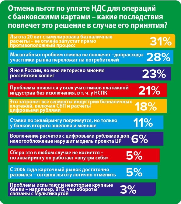Отмена льгот по уплате НДС для операций с банковскими картами запустит процесс деградации рынка. Результаты ПЛАС-Опроса от 14 октября Публикуем результаты ПЛАС-Опроса, проведенного PLUSworld c 6 по 14 октября 2025 года в нашем Телеграм-канале. https://plusworld.ru/articles/68024/