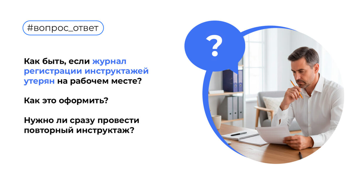 Как быть, если журнал регистрации инструктажей утерян на рабочем месте? Как это оформить? Нужно ли сразу провести повторный инструктаж? 💬 Ответ: В первую очередь, задокументируйте факт утери 👇🏻 ➜ Сотрудник, обнаруживший утерю, должен написать служебную записку. На её основании минимум из трёх человек создаётся комиссия, которая расследует инцидент. ➜ Комиссия составляет Акт об утере, описывая ситуацию, причины утери и указывая на необходимость завести новый журнал. ❗️ Акт служит основанием для объяснения отсутствия документов во время проверок. Далее на основании составленного акта руководитель организации издаёт Приказ, в котором утверждается факт утери журнала и назначаются ответственные за проведение внепланового инструктажа и ведение нового журнала. После этого можно приступить к оформлению нового журнала, при этом важно учесть: ❗️ Как только журнал будет создан и оформлен, проведите внеплановый инструктаж. Именно внеплановый, а НЕ повторный. ⚠️ Обратите внимание! Отсутствие жур