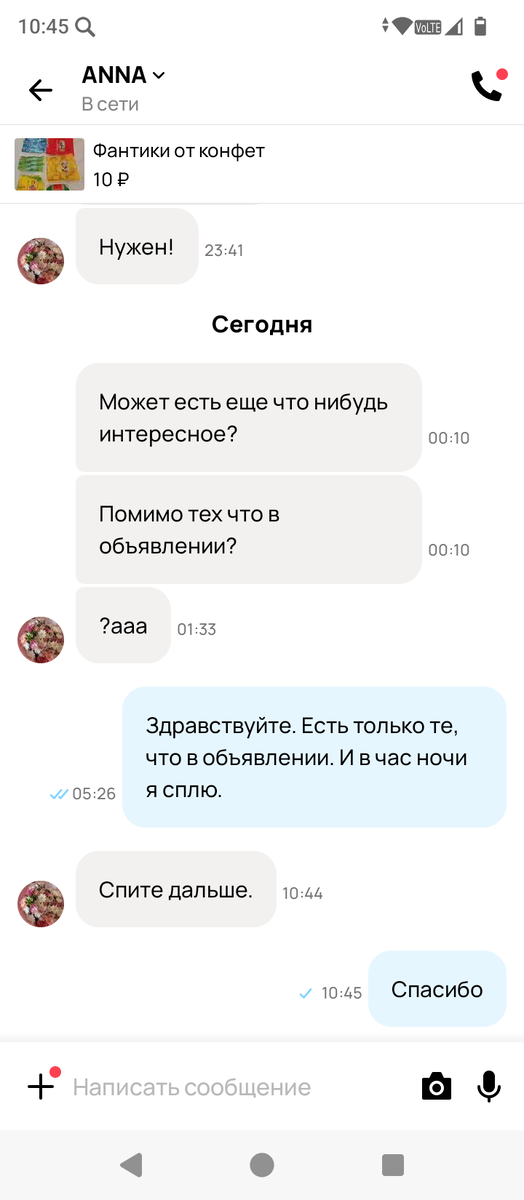 Что-то я уже запуталась в днях недели 🤣 а Василиса болела всего 2 дня 🕐 ощущение будто неделю 😁 Сегодня у меня ещё один заказ: туфли бальные для девочки тоже недолго задержались после возвращения🤭 Надеюсь, в этот раз их уже заберут😊 Вчера в ночи писала очередная сова. Всё равно вряд ли бы она купила этот фантик, доставка была бы очень дорогой😔 Среди всех сов, самым запоминающимся оказался Гордей, который хотел купить много, требовал моих ответов по ночам и рано утром, а ещё хотел личную доставку товаров в соседний город, чего я позволить никак не могла 🤣 Было это год назад. Требовал завести будильник😁 на 6 утра потому что он будет писать, когда жена проснётся 😂 жене можно спать, а продавцам нельзя почему-то🤭 Оплатить дорогу- это, конечно, билет на электричку в одну сторону. Перевести он собирался после того как жена получит передачу и скажет, что всё хорошо😃 Я после него отключила возможность мне звонить 😁 чтобы не доставали по ночам 🤭 Возвращаясь к настоящему: