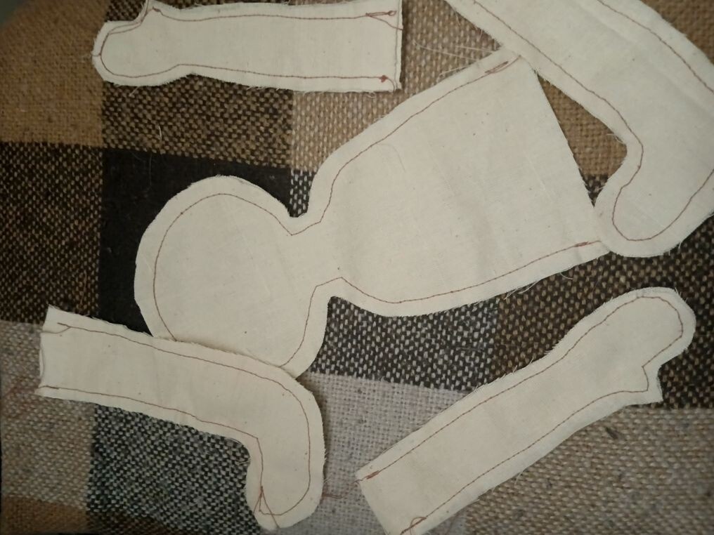 Я - особа ветреная, у меня каждый месяц новая любовь случается. То я увижу чудеса мастериц пэчворка и влюбляюсь в лоскутное шитье, и вот уже мои родные и близкие укрываются лоскутными одеялами. То впечатлюсь изделиями ручной бижутерии, и близким нет покоя от моих подарков - бусиков да сережек. Увлеклась декупажем - все коробочки обклеила и превратила в шкатулки. И так каждый раз - хоть в интернет не заходи! Ну вот, недавно увидела как шьют чердачных кукол. И так захотелось попробовать! И таки попробовала. Сначала из белой бязи выкроила детальки и сшила попарно - две руки, две ноги, голова с туловищем. Потом аккуратно при помощи китайской палочки вывернула сшитые заготовки. Набила все синтепухом, опять таки помогая все той же палочкой, и соединила все детали друг с другом. Следующая операция - тонирование. Искупала я кукольное тело в кофе с корицей. Ну, не купала, конечно, просто при помощи художественной кисти пропитала ткань, причем дважды. И цвет закрепился, и запах