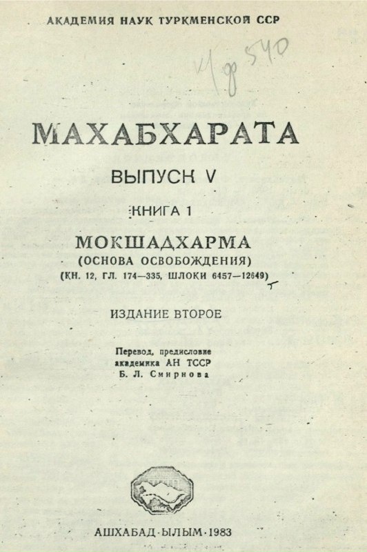 🇮🇳📖 Махабхарата. Вып.5, кн.1: Мокшадхарма (Основа Освобождения) (Кн.12, гл.174-335, шлоки 6457-12649) / АН Туркмен. ССР; Пер. с санскрита, предисл. Б.Л.Смирнова. - 2-е изд. - Ашхабад : Ылым, 1983. - 663 с.: илл. Предметная рубрика: Индийская литература Индийское литературоведение • История литературы • Древний период • Поэзия 🕉 Читать книгу #bookzealots