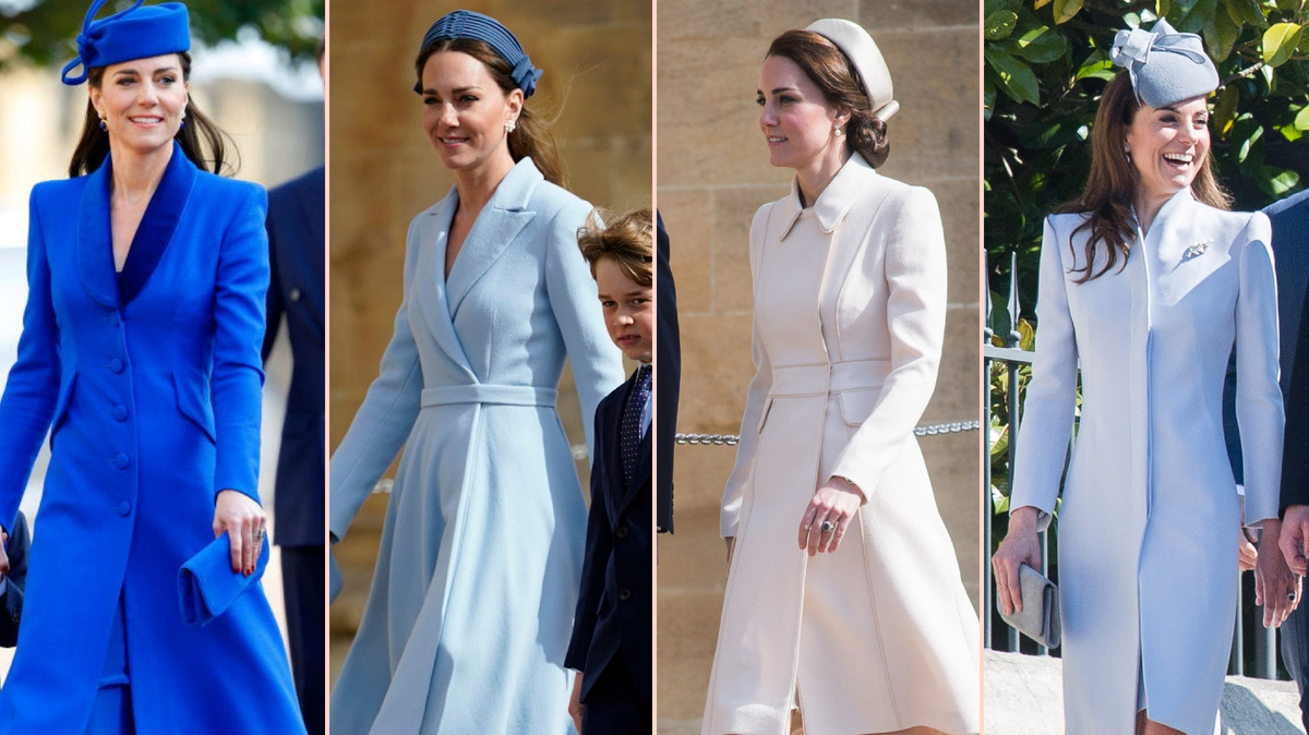 В этом году Кейт провела праздник в частном кругу с принцем Уильямом и их тремя детьми, принцем Джорджем, принцессой Шарлоттой и принцем Луи. Мы собрали лучшие пасхальные наряды принцессы Уэльской за все годы, с тех пор как она стала членом королевской семьи. На Пасху 2023 года принцесса Уэльская выглядела потрясающе в платье-пальто королевского синего цвета, сшитом на заказ дизайнером Кэтрин Уокер, и в подходящей шляпке от Lock & Co. Она взяла с собой свою любимую сумочку Emmy London Natasha Clutch и дополнила наряд серьгами из лазурита и лунного камня от Carousel Jewels. На Пасху 2022 года Кейт была одета в пастельное голубое платье-пальто от Emilia Wickstead, головной убор от Jane Taylor и жемчужные серьги от Cassandra Goad. Она также держала в руках клатч от Emmy London. В 2019 году Кейт была одета в бледно-голубое платье-пальто Alexander McQueen, шляпу Jane Corbett и держала в руках свою любимую сумочку Emmy London. Это был повторный пасхальный наряд тогдашней герцогини Кембрид