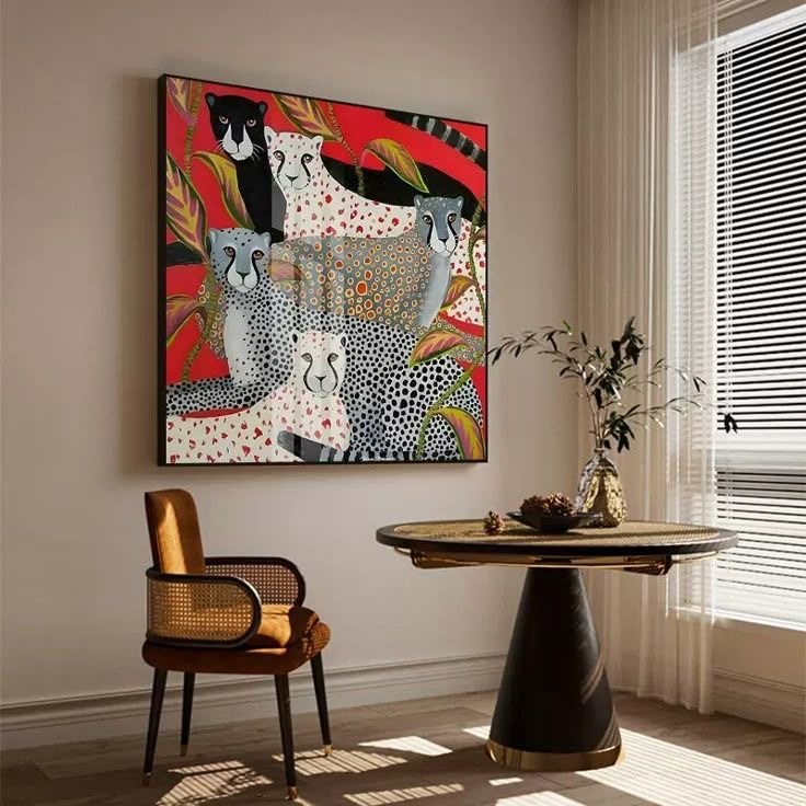 Как я создала оберег от сглаза, порчи, счетчиков и плохого настроения Знаете, в каждом доме есть то самое место. Не магический портал в Нарнию, конечно, но нечто столь же загадочное и неизбежное. У меня это стена в прихожей, где ютится щиток. И он, по классике, на самом видном парадном месте. Это раздражало. Нужно было решение. Картина абстракция? Банально. Фотография с морем? Недостаточно мощно. И тогда мне в голову пришла странная и слегка безумная идея: нарисовать картину-талисман. Вдохновилась я двумя вещами. Первое, это реально картина, которая существует. (Повторюшка бе-бе-бе). Безумно заметная, большая, яркая. Такую бы еще и эпоксидной смолой залить, чтобы блестела, как стекло, и это будет НЕРЕАЛЬНЫЙ арт-объект. А второй вдохновитель - это иллюстрация из детской книжки😂 это вообще ор выше гор, тут прекрасно всё. Было решено: это будет такой же постер на красном фоне. Почему красный?красный — цвет силы, энергии и запрета ступить дальше без печенья. Идеально. Ангелочки и