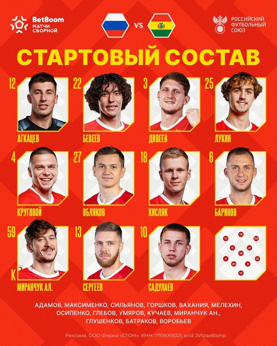 🇷🇺 🇧🇴 А вот и состав сборной России на матч с Боливией