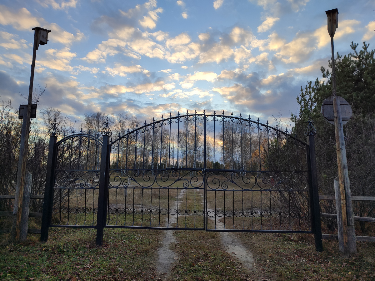 Я не буду писать о том, как мы с братом до туда добрались. Это был вообще квест, так как мой брат забыл туда дорогу, но был стойко уверен, что он прав. Хотя если бы мы сделали так как я предлагала добрались бы до туда гораздо быстрее. Но когда мужики нас слушали вообще? Нас встречали чёрные металлические ворота. Чёрные металлические ворота и деревянный забор через который можно легко перелезть, это кончено вообще мощно😆 ещё и висят замки и предупреждающие надпись "ведётся видеосъемка". Через что она конкретно ведётся мы так и не нашли. Брат предположил, что может быть камера прячется в скворечнике😄 Идем дальше. В общем у меня в деревне есть бюджетный лесной техникум, там готовят садовников, лесников, ландшафтных дизайнеров и тд. Ну в СССР это ещё работало, щас туда просто идут неучи, что б хоть какую то корочку получить. Еще тут стоят вот такие домики без окон и дверей. Было бы конечно гораздо круче, если б тут стояла вырезанная из дерева бабка ежка, избушка на курьих ножках,