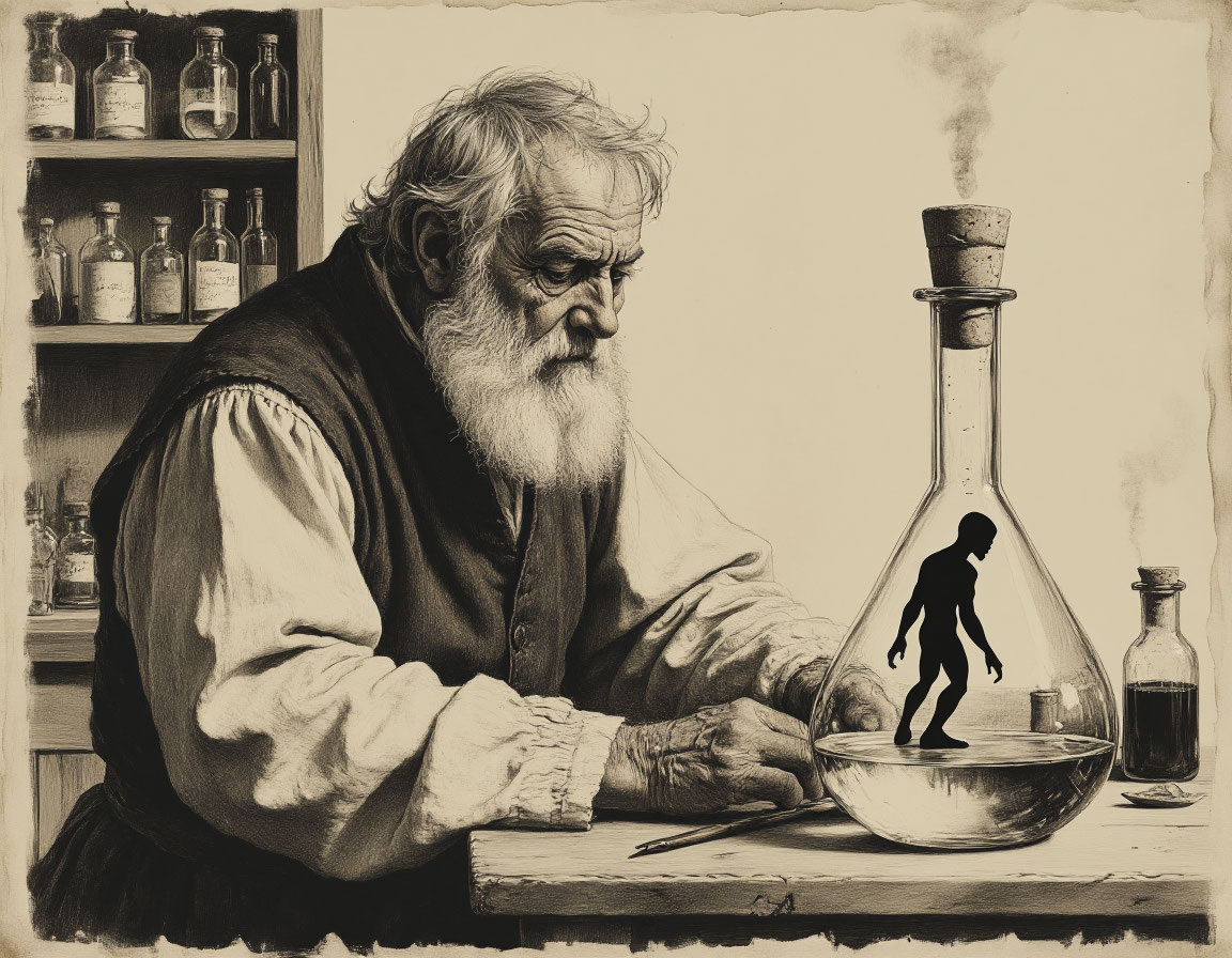 Мысли по созданию искусственного человека зародилась в древности как синтез преформистских теорий (учение о том, что зародыш уже полностью сформирован в половых клетках и его развитие сводится лишь к росту), алхимических традиций и народного фольклора. Гомункул или Гомункулус — это искусственно созданный человек, которого средневековые алхимики пытались получить в лаборатории. Название происходит от латинского слова, означающего «маленький человек». В основе концепции лежало представление о том, что в сперматозоиде уже содержится готовый миниатюрный человек, и если понять процессы естественного зачатия, можно воспроизвести их искусственно. Эта идея стала отражением стремления человечества разгадать тайны жизни и научиться управлять ими. Филипп Ауреол Теофраст Бомбаст фон Гогенгейм (Парацельс) описал в труде De Natura Rerum(1533) метод создания гомункула. Процесс включал помещение человеческой спермы в колбу-реторту, запечатывание и выдерживание в конском навозе 40 дней с чтением закли