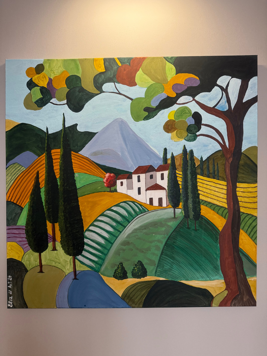 Тоскана Материал: акриловые краски, клей ПВА, крахмал Холст: 80*80см на подрамнике хлопковый Знаете, что происходит, когда житель города, видевший за год три дерева и пять сорванных с клумбы тюльпанов, открывает Pinterest? Его накрывает неудержимое желание нарисовать Тоскану. Так случилось и со мной. Смотрю очень много видео про дизайн интерьера, и мне попалась эта картина. Вдохновилась, хотя такие красочные полотна я не люблю, а этот сюжет и стиль написания, такой как мультяшный, простой, мне вдруг понравился. Лайфхак для художников: как сделать акрил послушным, как масло. В этот раз также попыталась сделать акрил плотным, объемным и укрывистым с помощью клея ПВА и крахмала. Почему и как? Потому что не хотелось покрывать именно эту картину слой за слоем, хотелось однородного покрытия с первого раза. И вот лайфхак: есть рецепт самодельной текстурной пасты из ПВА и крахмала (я несколько картин в такой технике делала). Там пропорции были такие, что масса превращалась в такую объемн