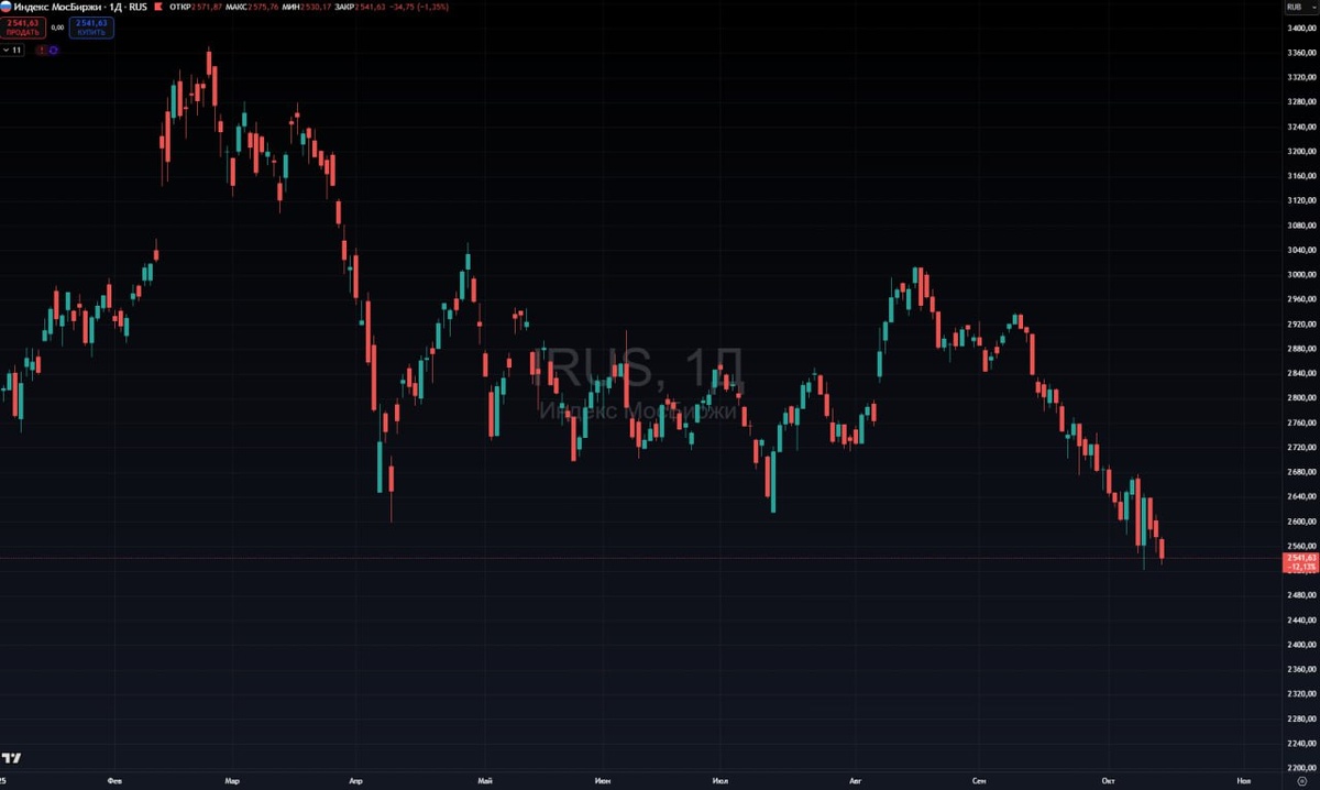 Индекс Мосбиржи. Самое низкое закрытие дня в этом году.