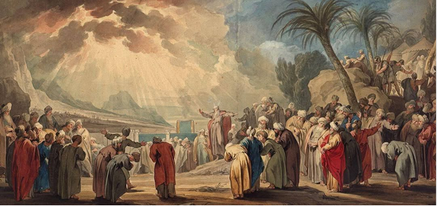 Затем Моисей, Аарон, два старших сына Аарона и семьдесят из старейшин взошли на гору для трапезы Завета перед лицом Бога. Все они видели присутствие Бога и не погибли, потому что Бог так пожелал.