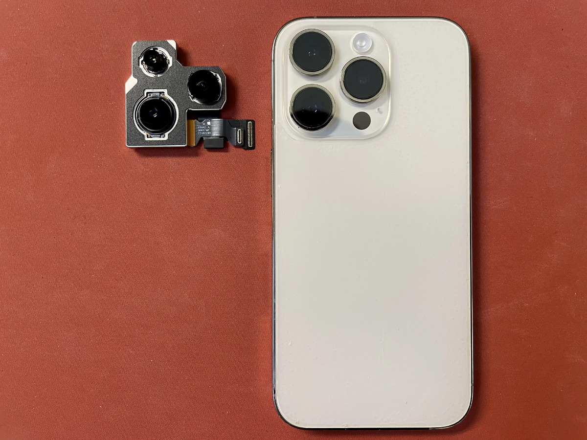 Привет, я Денис, мастер Сервис36.рф. Принесли iPhone 13 Pro после удара: из трёх камер «жила» только телевик, широкий и основной — черный экран. Теоретически можно менять по одной, но когда падают сразу две — разумнее поставить весь блок камер целиком. Так и сделали: оригинал с разборки, чистый, без колхоза. Почему блок целиком: меньше риска по расхождению в цветах и калибровках между модулями, меньше сюрпризов для клиента. Работал через дисплей: аккуратный прогрев, подрезка у каплёнки, снятие защитных пластин, отключение шлейфов, установка блока, новая влагозащитная проклейка с праймером, прожим и прогрев. Дальше — Ассистент ремонта, калибровка, перезагрузка. В iOS в разделе Настройки → Основные → Об этом устройстве → История сервисов блок определяется как подлинная БУ деталь (Genuine/Used). Все режимы съёмки — на месте, переключения между объективами плавные. Комментарий мастера: если от удара погибли две камеры — замена блока экономит время и нервы. На 13 Pro это до сих пор
