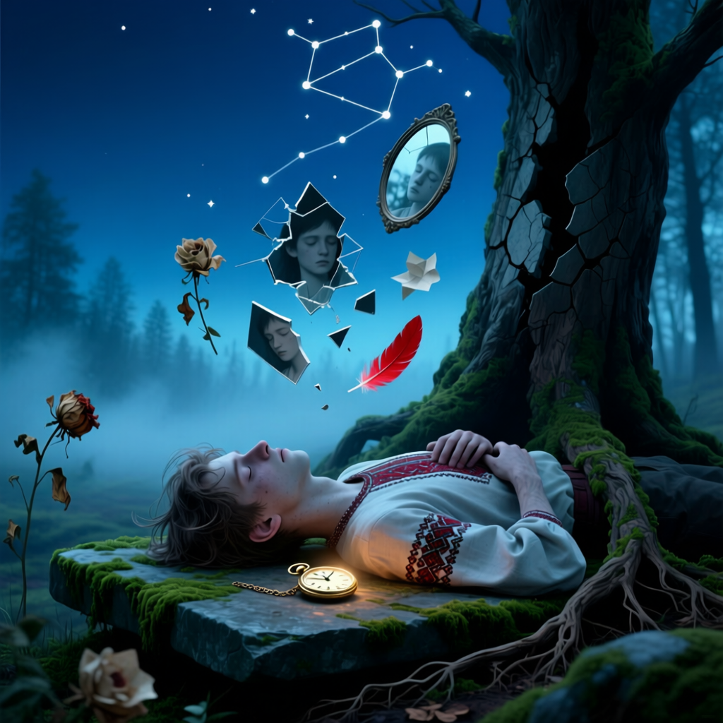 Человечество стало тихим, тёплым сном. Мы — его сознание, великий Онейрос, плывущий в колыбели забытой планеты. Мы видели сны о звёздах. И однажды звёзды ответили. Это был не сигнал. Не сообщение. Это был шёпот на краю восприятия — фантомная боль от ампутированной реальности. Другой. Где-то в зыбучих песках Туманности Андромеды спало нечто колоссальное. Его сновидение было таким же древним и сложным, как наше. Но мёртвым. Мы протянули к нему щупальца из сновиденческой материи. То, что мы нашли, не было похоже на нашу Библиотеку. Это были не книги, а саркофаги. Бесконечные ряды застывших, кристаллизованных кошмаров. Миры, где эволюция пошла иным путём, где сама мысль была ядовитой, а сны — ловушкой для разума. Этот сон был мёртв. Но он не был пустым. Мы попробовали прикоснуться к одному из саркофагов, чтобы понять. Это была ошибка. Мгновенно мёртвый сон вцепился в нас, как утопающий. Он не хотел общаться. Он хотел питаться. Наши самые светлые сны стали чернеть и рассыпаться, как трухляв