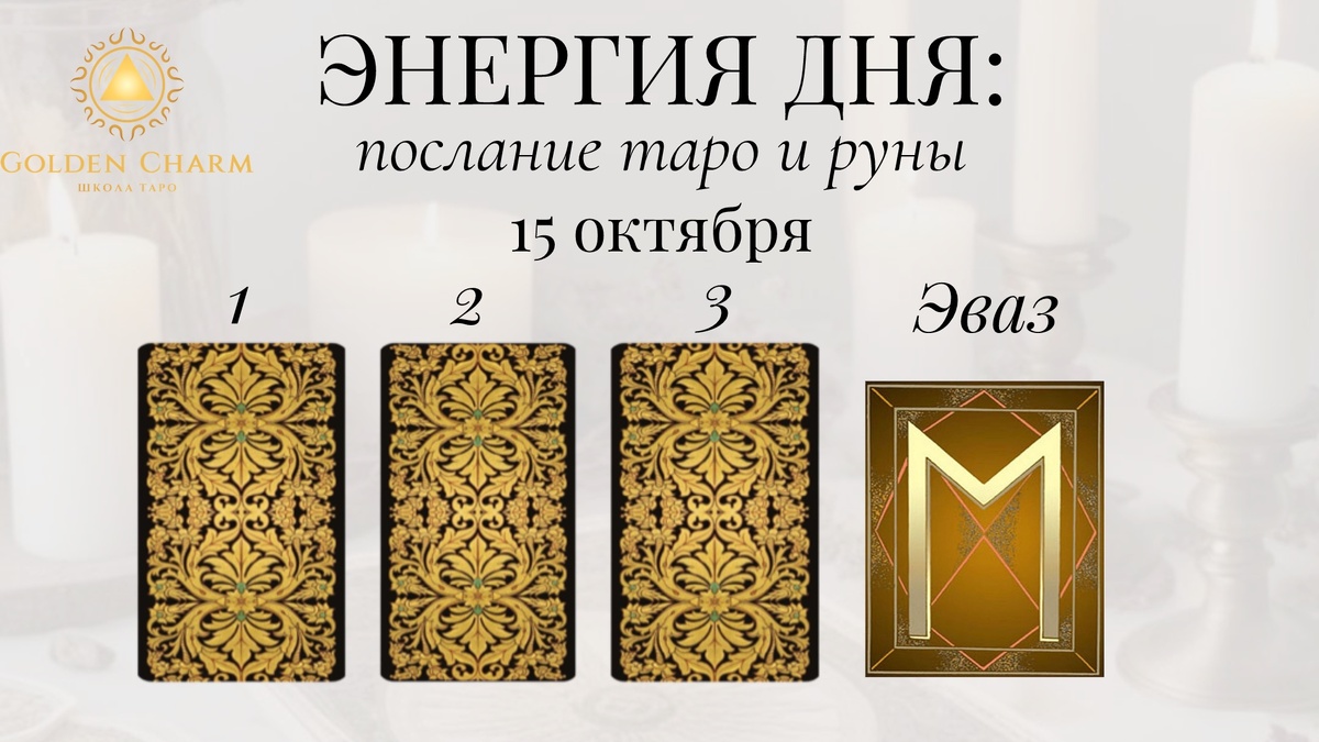 Заказать личный расклад тут✅ Прогноз на 15 октября : что тебя ждёт Приходи на обучение Таро ✅ Выбери карту — 1, 2 или 3 — и узнай, какой путь для тебя: 1. Колесница Этот день принесет перемены и движение вперед. Ты почувствуешь силу и уверенность в себе. Возможно путешествие или важное решение, которое повлияет на твоё будущее. Действуй смело! 2. Туз Жезлов Приготовься к новому началу. Сегодняшний день откроет перед тобой новые возможности и перспективы. У тебя появится энергия и вдохновение для реализации своих планов. Начни действовать прямо сейчас! 3. Семёрка Жезлов Будь готов защищать свои интересы и убеждения. Этот день потребует от тебя настойчивости и решительности. Важно стоять на своем и отстаивать свои позиции. Верь в свои силы и двигайся вперёд! Руна дня — Эваз Это символ перемен и прогресса. Готовься к изменениям, новым открытиям и возможностям. Сегодняшний день принесёт важные события, которые продвинут тебя вперед. Напиши цифру карты + ЭВАЗ в комментар