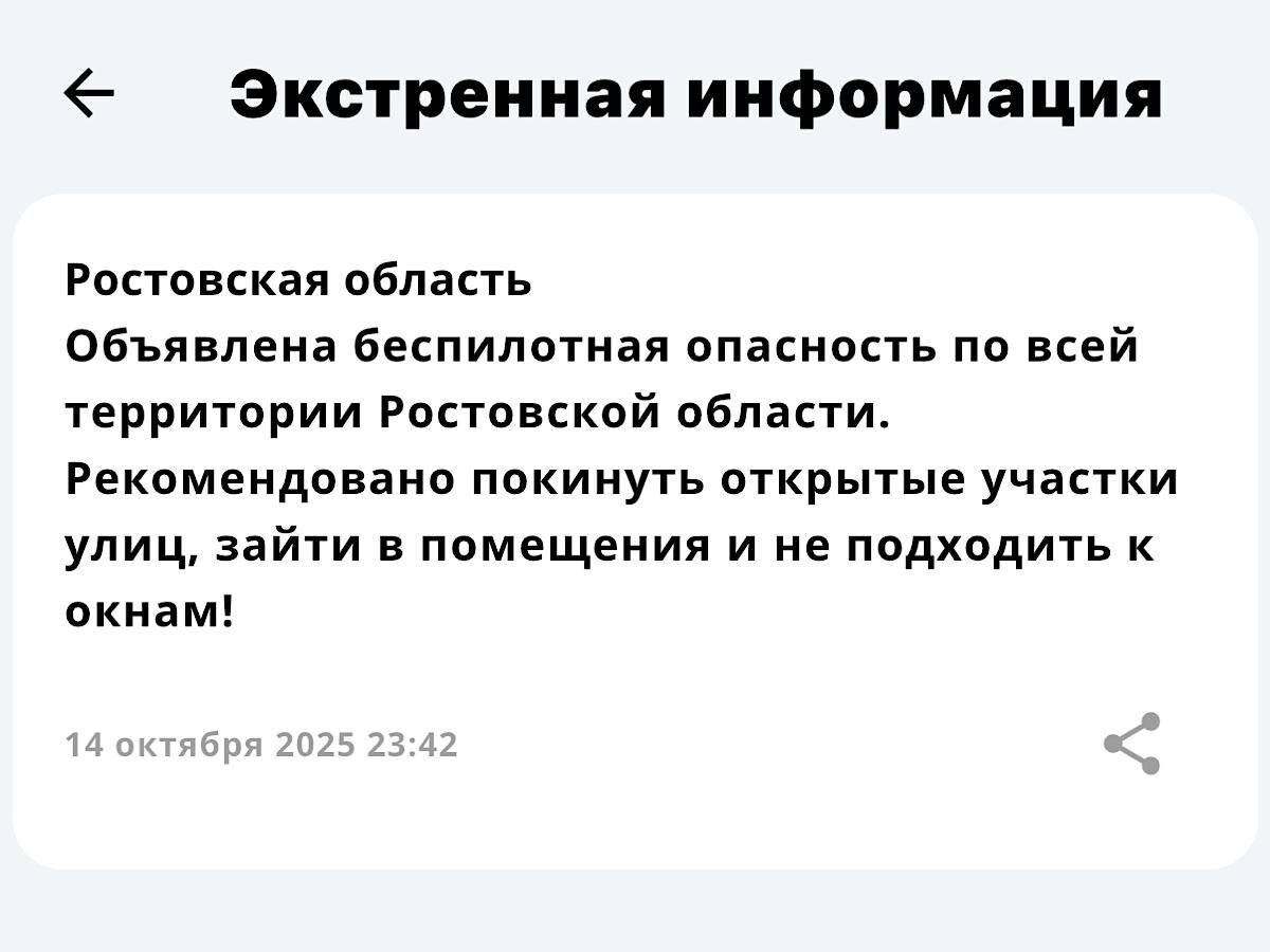 ‼️В Ростовской области объявлена беспилотная опасность ‼️