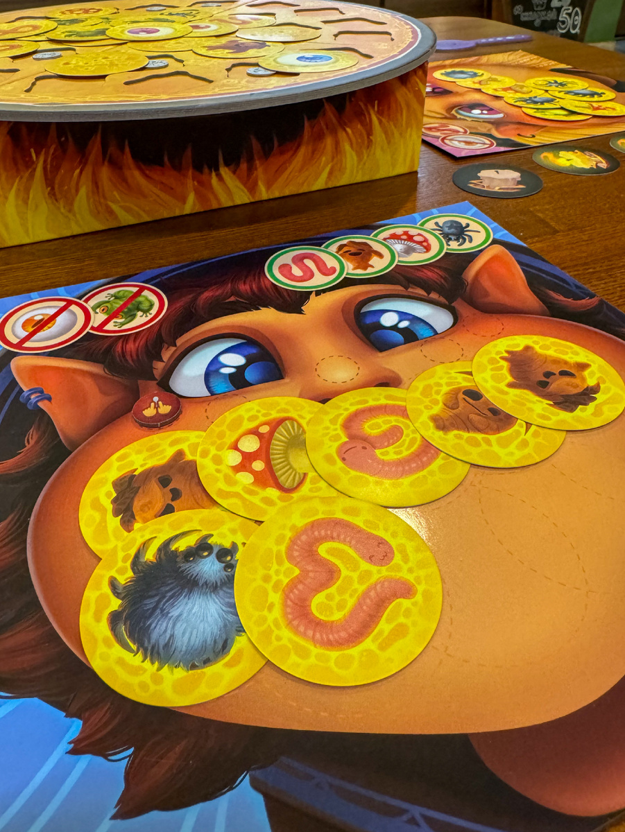 Недельку назад с Никой сыграли несколько партий подряд в «Голодных ведьмочек» — в простом и сложном режимах — давайте обсудим ;) ПРАВИЛА Элементарные! Вы играете за ведьмочек, пришедших на тусовку со всякими вкусняшками: червяками, мандрагорами и лягушками. Ваша задача — наесться до упаду и только той еды, на которую у вас нет аллергии. Каждый игрок получает ведьму со вкусовыми предпочтениями и «запретными для употребления внутрь компонентами». Игра проходит парным соревнованием: каждый раз два участника добавляют по 2 новых жетона еды в котёл, после чего берут магнитные ложки и на счёт три опускают их в котёл с непонятным варевом. В котле есть магниты — жетоны соли — и круглые карточки «еды», которые вам предстоит поймать. Когда к вашей ложке прилипает магнит (жетон соли), вы её вытаскиваете и смотрите, что сейчас вам придётся съесть (какие карточки еды прилипли вместе с солью). Если эти ингредиенты ваша ведьма любит, переместите их на планшет. Если нет — за каждую карточку с запрещён