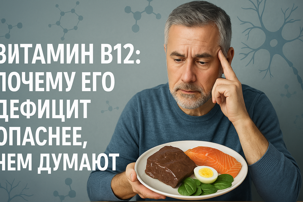 Мы привыкли слышать про витамины A, D и C. Но про B12 говорят меньше, хотя именно он часто становится «невидимой причиной» усталости, головокружений, проблем с памятью и даже депрессии. После 40–50 лет нехватка этого витамина встречается у каждого третьего человека, особенно у женщин. И самое опасное — дефицит B12 развивается медленно, годами, маскируясь под другие болезни. B12 (или кобаламин) — это водорастворимый витамин, без которого не работает ни одна клетка организма.