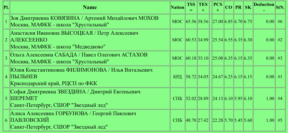 Гран-при «Лёд мечты». Зоя Ковязина - Артемий Мохов выиграли короткую программу. Высоцкая - Алексеенко — вторые, Сабада-Астахов — третий