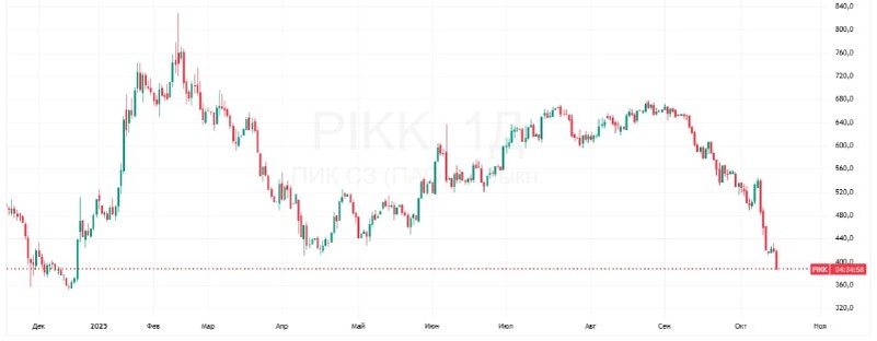 ПИК за неделю потерял 27% капитализации. Чего ждать от акций дальше ПИК за неделю потерял 27% капитализации. Чего ждать от акций дальше Акции застройщика сегодня подешевели на 6,81% и на минимуме опускались до 390,3 за бумагу. Бумаги показали худший результат в индексе Мосбиржи, а за последнюю неделю они и вовсе подешевели в общей сложности на 27%. Распродажи начались на прошлой неделе после того, как совет директоров ПИКа проголосовал за отмену утвержденной в 2023 году дивидендной политики, а также предложил провести консолидацию обыкновенных акций в пропорции 100:1. Сегодня котировки застройщика ускорили снижение на новостях о том, что он в ближайшие годы не планирует возвращаться к выплате дивидендов. Как обратный сплит повлияет на ликвидность акций, почему они могут упасть еще сильнее и какие риски стоит учитывать частному инвестору в материале « Инвестиций». Котировки ПИКа рухнули на 27% за неделю Что будет с акциями дальше Данные: TradingView Подписаться на «Сам ты инвест