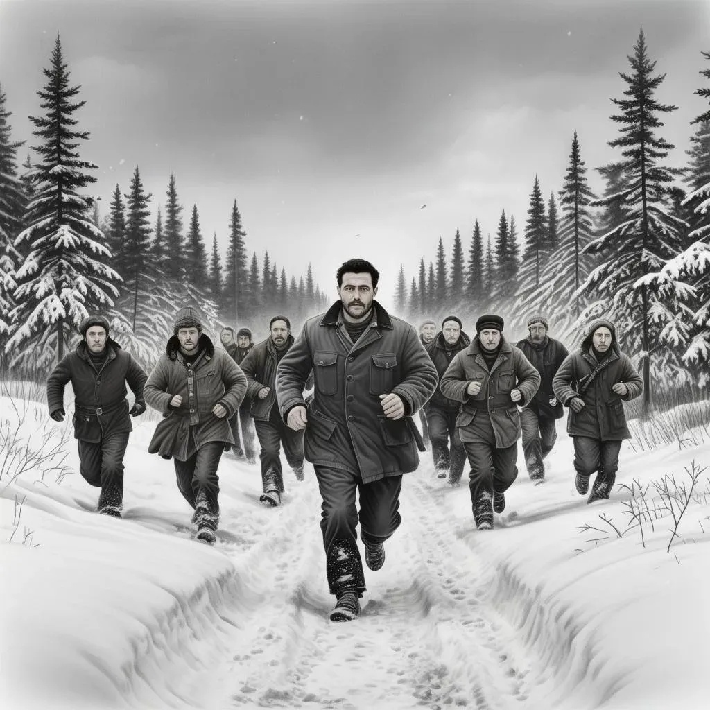 Снег искрился под ногами, хрустел, словно потрескивало старое стекло. Изморозь покрывала густые бороды беглецов, запорошила лохмотья одежды, делала еще острее холод пробирающего ветра. Отряд отчаянных душ бежал с Колымы уже много дней. Их шаги были тяжелыми, глаза пустыми, руки окоченевшие... Но сердца стучали глухо, неумолимо тянули вперед — туда, куда манили мечты о свободе, пусть призрачной и эфемерной, но такой желанной...