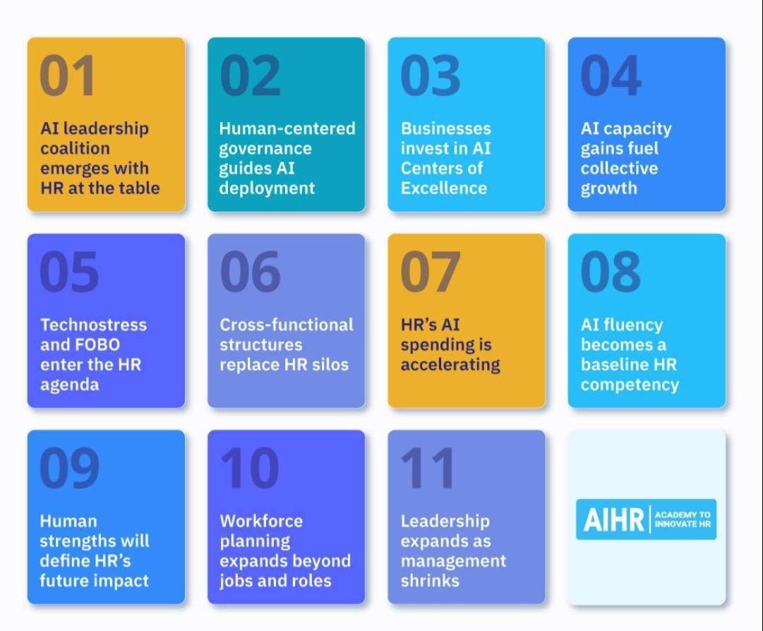 HR будущего Мир перестал быть линейным. Технологии ускоряются, роли стираются, а решения принимаются быстрее, чем их успевают осмыслить. В этой среде HR становится не службой поддержки, а нервной системой компании. Исследование AIHR показывает, что профессия входит в фазу гибридной эволюции. Основные тенденции: 1️⃣ИИ и автоматизация становятся партнёрами, освобождая место для стратегического мышления. 2⃣Навыки важнее должностей. Компании строят экосистемы компетенций, где человек растёт по возможностям. 3️⃣Организации становятся гибкими. HR проектирует кросс-функциональные команды и культуру доверия. 4️⃣Человечность превращается в конкурентное преимущество. Эмпатия, зрелость, устойчивость решают больше, чем технологии. Это и есть новая роль. Быть не между людьми и бизнесом, а внутри их взаимодействия. Быть тем, кто удерживает систему в живом состоянии, когда вокруг всё становится алгоритмом. ———————————— В папке HR собраны каналы и исследования, которые помогают развивать эту н