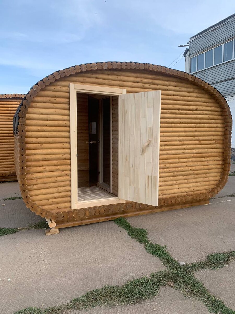 Бревенчатая баня-бочка "Квадро-овал", 4х2.4 м из ОЦБ 100 мм с качественным межвенцовым утеплителем