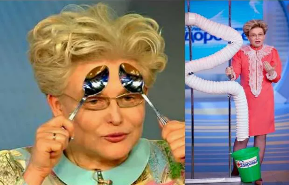 Это не сюрреалистический сон и не отрывок из авангардного театра. Это обычный выпуск программы «Жить здорово», а в центре этого фееричного шоу главный медицинский просветитель страны Елена Малышева. Женщина, которая советовала освежать заветрившийся салат перекисью водорода перед подачей гостям, называла пандемию чудом чудесным и на полном серьёзе уверяла, что тщательная уборка дома вредна, так как у микробов не должно быть привыкания.