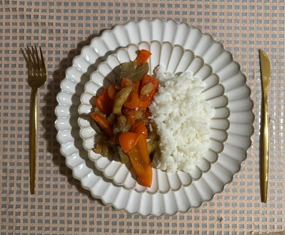 Сегодня приготовила на ужин рис с очень вкусной армянской закуской из овощей Аджап Сандал, которую делала вчера🥰 сегодня попробовала и